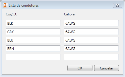 Clique para abrir a caixa de diálogo Lista de Condutores, na qual é possível adicionar condutores e definir a cor e o calibrador para cada condutor.