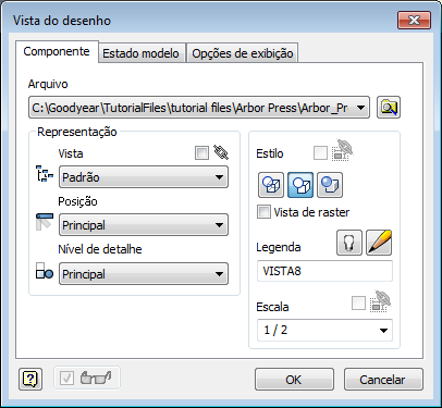 Caixa de diálogo Vista do desenho revisada