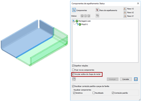 Agora, o estilo de chapa de metal do componente de origem pode ser incluído com o componente de espelhamento de peças de chapa de metal.