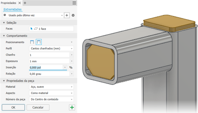 Instale a Biblioteca de conteúdo personalizado para usar o novo comando Arremate adicionado com o Inventor 2020. As funcionalidades Entalhar e Inserir estrutura foram aprimoradas.