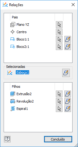 Agora, blocos de esboço consumidos por operações são exibidos na caixa de diálogo Relações.