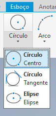 O comando Elipse foi movido para o grupo Círculo no painel Criar para fornecer acesso constante em ambientes de peça e de montagem.