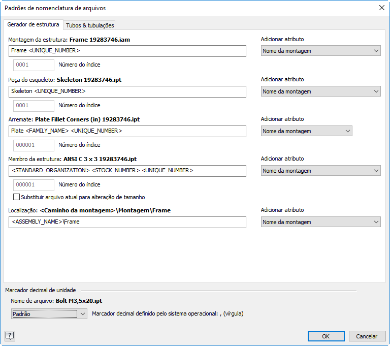 Para alterar o marcador decimal padrão, selecione um marcador decimal da lista suspensa Marcador decimal da unidade.