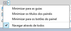 - Para alterar a exibição da faixa de opções, clique na seta localizada à direita da barra de guias e selecione uma opção. É possível minimizar em guias ou quadros de painéis. Você pode percorrer as opções da faixa ciclicamente ao clicar no ícone em vez da seta.