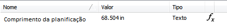 Importante: As unidades dos valores de "Comprimento da planificação", "Largura da planificação" e "Área da planificação" só aceitam cm, mesmo que você especifique outro valor em Configurações do documento. Para alterar os valores de planificação para uma unidade que não seja cm, use as seguintes sequências de caracteres na caixa de diálogo iProperties > guia Personalizado e especifique outra unidade: