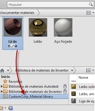 - Na seção Aparências do documento, arraste e solte todas as aparências que deseja conservar na biblioteca personalizada. É possível soltá-las nos nós de categoria ou no nó de biblioteca.