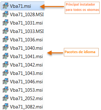 - Vba71.msi é o principal instalador para todos os idiomas. Os outros instaladores são pacotes de idioma. Para identificar o pacote de idioma apropriado ao seu idioma, consulte: https://msdn.microsoft.com/pt-br/library/ms912047(v=winembedded.10).aspx Se aplicável, clique com o botão direito do mouse no instalador adequado e selecione Instalar.
