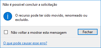 404, 410 | 1) Clique no botão Fechar. 2) Atualize a localização da pasta do arquivo. 3) Tente acessar o arquivo novamente.