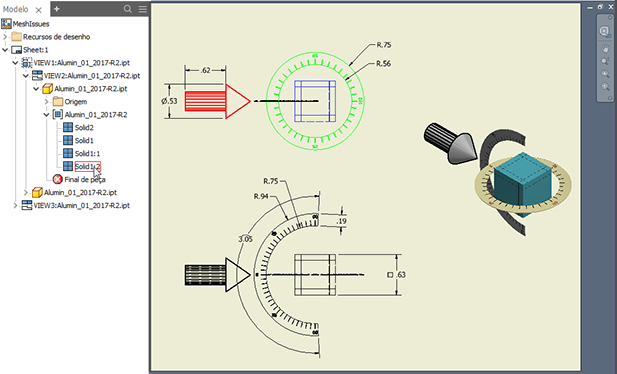 DESATIVADA por padrão. Ao inserir uma vista, vá para a guia Opções de recuperação e especifique suas preferências de visualização. Ao trabalhar com objetos de malha em uma vista de desenho, você poderá observar o seguinte: