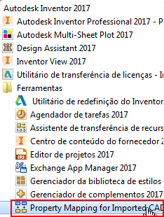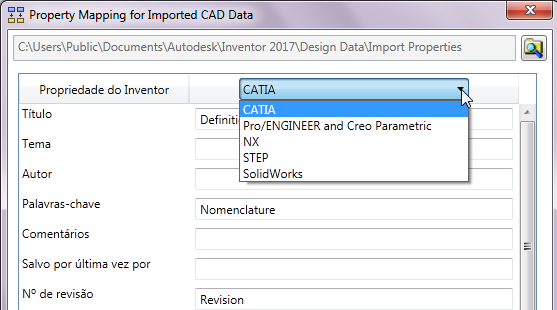 Para obter mais informações, consulte Para mapear propriedades de dados de CAD importados para propriedades padrão do Inventor.