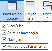 comando Minibarra de ferramentas para desativar a exibição das minibarras de ferramentas.