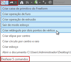 No navegador ou na janela de desenho em um arquivo de peça: