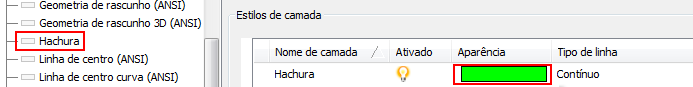 objeto Hachura na caixa de diálogo Editor de estilos e normas.