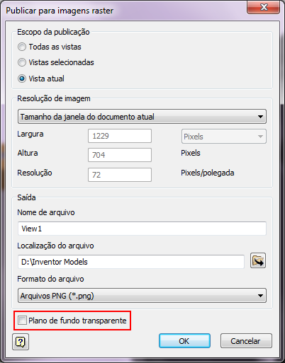 . Na parte inferior da caixa de diálogo, marque a caixa referente a Plano de fundo transparente.