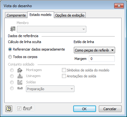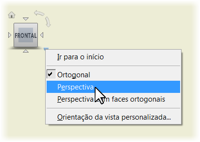 Por padrão, a projeção ortogonal é utilizada para criar vistas de desenho. Para usar a projeção em perspectiva, ao criar uma vista base ou editar uma vista base ou uma vista projetada independente, clique com o botão direito do mouse no ViewCube e clique em Perspectiva.