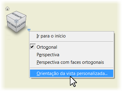 Clique com o botão direito do mouse no ViewCube e clique em Orientação da vista personalizada para inserir o ambiente Vista personalizada. Em seguida, especifique a orientação da vista personalizada.
