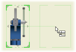 Quando você cria uma vista base e vistas projetadas, um valor de escala temporário é usado para ajustar a vista do modelo à folha. Arraste um canto da vista base para alterar a escala da vista diretamente na janela de desenho.