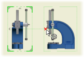 Para adicionar uma vista projetada a uma localização específica na folha, arraste a caixa delimitadora da vista projetada para a localização desejada. Em seguida, clique para criar a vista.