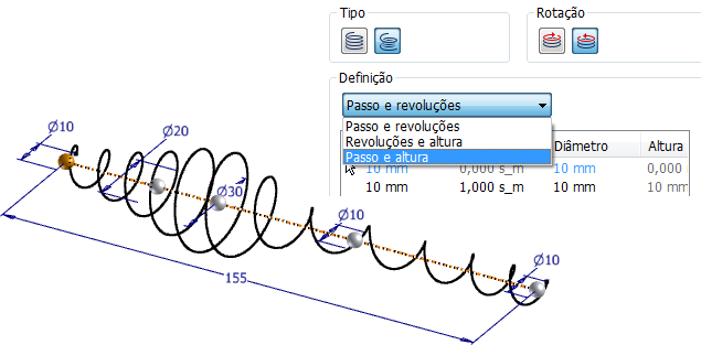 O comando Curva helicoidal foi aprimorado para simplificar a criação de uma hélice com passo variável.