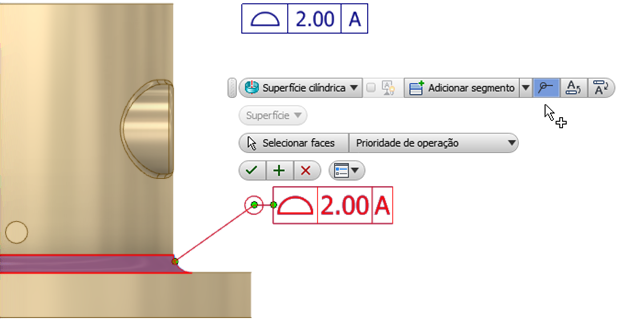 O símbolo de todo o contorno é adicionado a tolerâncias geométricas de perfis de superfície.