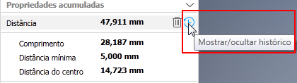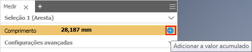 Para cada tipo de medição que desejar acumular, primeiramente faça uma seleção na janela de desenho e, depois, clique no sinal de mais. Cada medição é adicionada ao grupo Propriedades acumuladas associado ao tipo de medição da seleção.