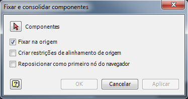 Fixar e consolidar componente fixava, movia e usava restrições de alinhamento para consolidar o componente selecionado na origem da montagem e, em seguida, reposicionava o componente na parte superior do navegador.