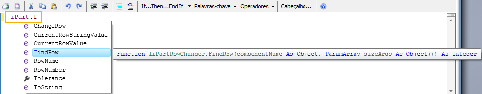 | Depois que você digitar ".", será exibida uma lista suspensa de propriedades e métodos. | Comece a digitar após inserir ".", e o preenchimento automático exibirá as seleções disponíveis. |
