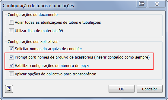 Aprimoramentos de configuração de tubos e tubulações (não disponível no Inventor LT)