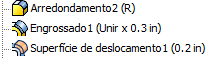 Para obter mais informações sobre o comando Espessura/Deslocamento, consulte Para engrossar faces ou superfícies deslocadas.