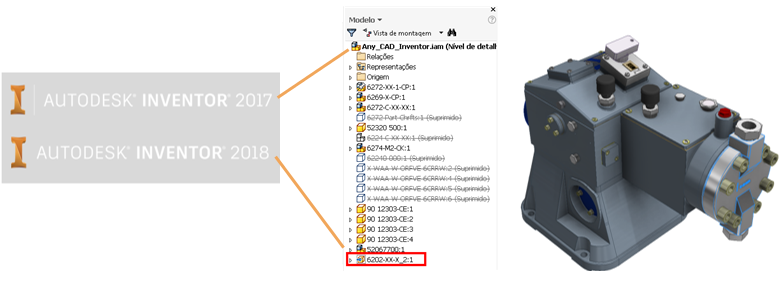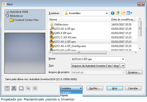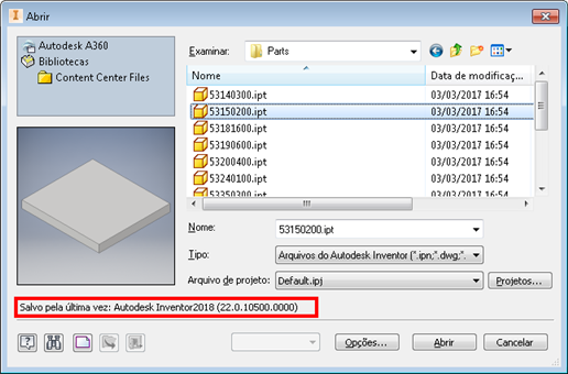 Com o Inventor 2017.4, o AnyCAD foi expandido para permitir que você aproveite os arquivos do Inventor 2018 em projetos do Inventor 2017. Isso significa que você já pode trabalhar com pessoas que estejam usando versões do Inventor anteriores ou posteriores à versão que você está usando. Para ajudar a identificar a versão de um arquivo do Inventor, a caixa de diálogo Abrir exibe a versão do Inventor na qual o arquivo foi salvo da última vez.