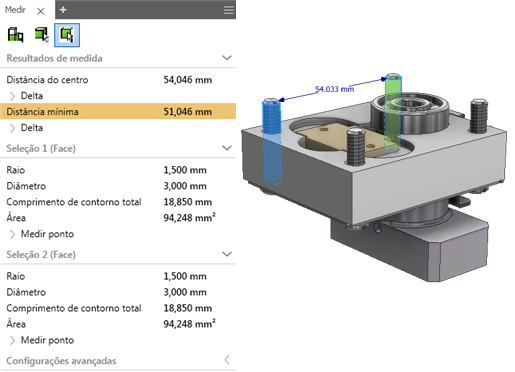 As os fluxos de trabalho e as ferramentas de medida do Inventor foram melhoradas para aprimorar a produtividade. Agora, você pode:
