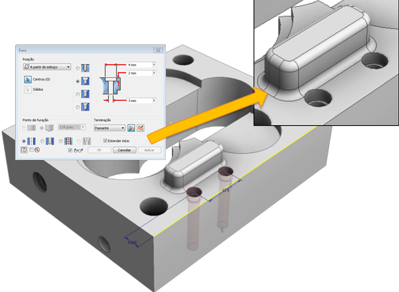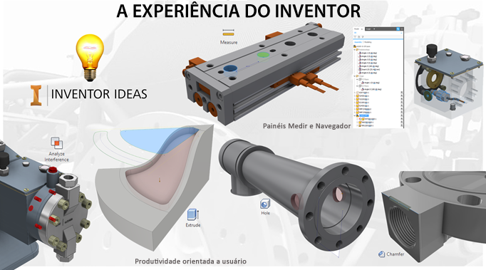 O Inventor 2018 continua com foco nas solicitações e comentários dos clientes sobre o Inventor Ideas e em oferecer a você uma experiência agradável no Inventor. Melhorias orientadas ao cliente em todo o Inventor 2018 aprimoram os fluxos de trabalho centrais e a interação do modelo. Comandos como Chanfro, Análise de interferência na montagem, Extrusão e Furo possuem mais opções, de acordo com o seu feedback direto. Além disso, o Navegador e a Medida foram atualizados para fornecer uma experiência mais avançada para todos os usuários do Inventor.