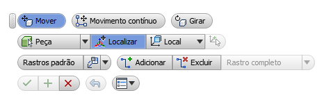 Todas as peças Cria rastros para todas as peças selecionadas (porém, as submontagens não criam rastros).
