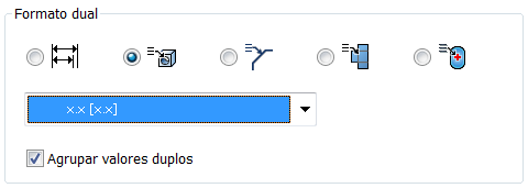 A nova opção Agrupar valores duplos está disponível para oferecer suporte ao posicionamento adjacente de cotas duplas em notas de furo. Essa opção pode ser encontrada em Editor de estilos e normas