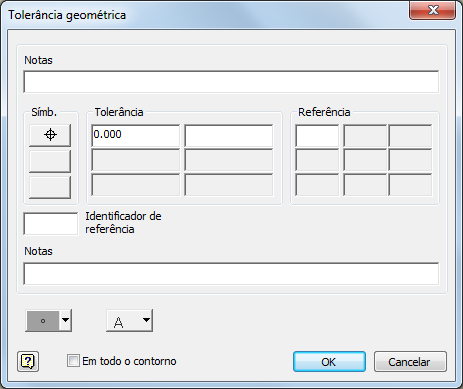 Há um novo campo de edição disponível que permite adicionar notas na parte superior dos símbolos de tolerância geométrica.