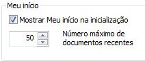 Agora é possível especificar o número de documentos recentes que são exibidos no ambiente do Meu início. O número padrão é 50, e o máximo é 200. Para acessar a configuração: Ferramentas Opções Opções do aplicativo - guia Geral.