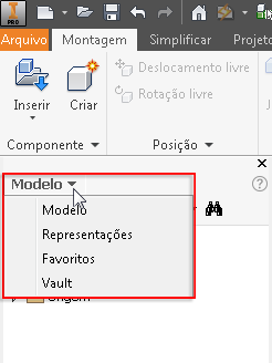 Atalho para alternar o navegador do Inventor através de outros painéis de navegador disponíveis