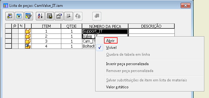 Nota: Requer um arquivo de desenho com o mesmo nome de arquivo da montagem ativa.