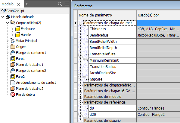 Dica: Em uma peça com vários corpos, utilize Usado(s) por com a opção de filtro Por operações para identificar dependências.