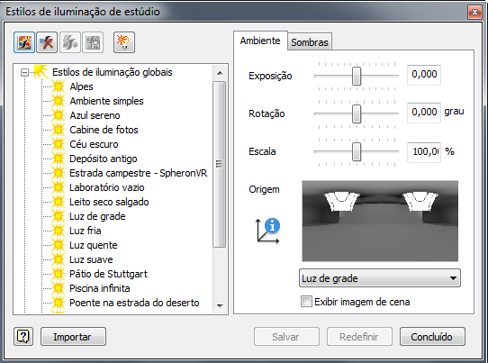 Todos os estilos de iluminação do Inventor Studio agora são associados a uma IBL. A IBL oferece uma melhor fonte de iluminação.