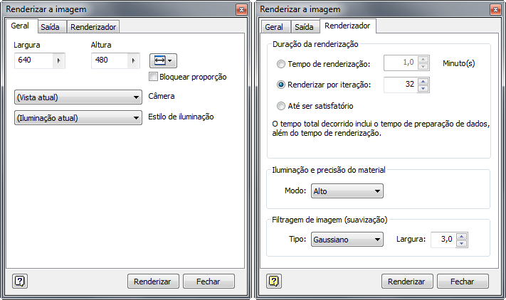 Agora, a iluminação baseada em imagens do ambiente de modelagem é compatível com o Inventor Studio. Para renderizar no ambiente de iluminação de modelagem, use os comandos disponíveis na guia Vista e, em seguida, use a Iluminação atual na caixa de diálogo Renderizar a imagem do Studio ou altere para outros estilos de iluminação na caixa de diálogo Renderizar a imagem.