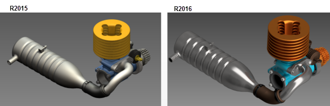 O efeito de exibição aprimorado do estilo visual Sombreado está mais consistente com o estilo visual Realista. Efeito visual aprimorado para vista sombreada. As duas imagens a seguir comparam os resultados do uso de Vista sombreada em 2015 e 2016. O alto desempenho de renderização foi mantido.