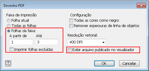- Quando selecionada, a nova opção Exibir arquivo publicado no visualizador exibe as folhas no Adobe Acrobat Reader depois que você clica em Salvar.