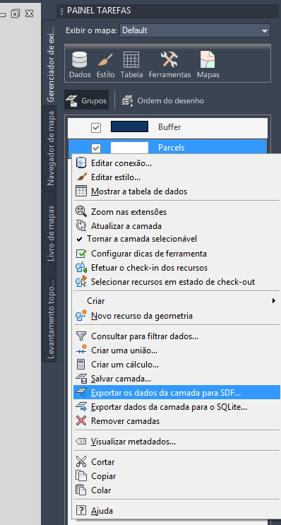 Clique com o botão direito do mouse na camada de Lotes para exportá-la.