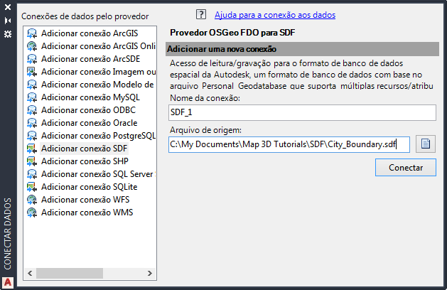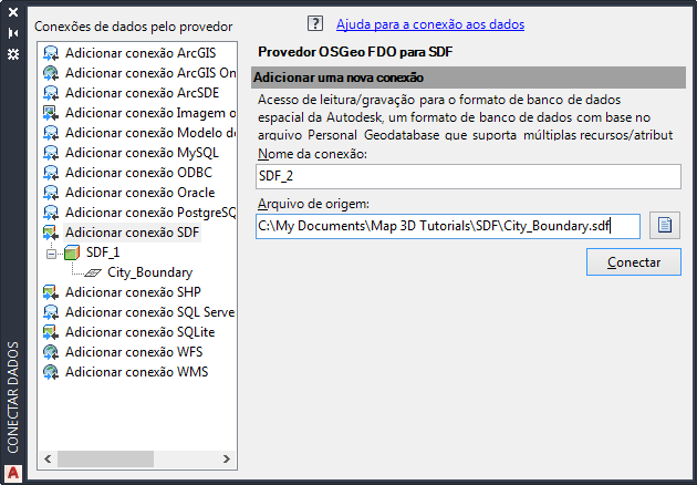 Selecione o provedor de SDF e navegue para o arquivo de amostra, CITY_BOUNDARY.SDF.