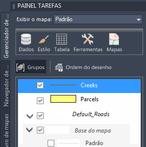 A guia Gerenciador de exibição exibe as camadas no mapa atual.