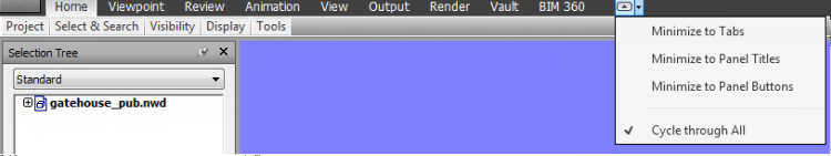 - Minimizar para títulos dos painéis: minimiza a faixa de opções para que somente os títulos das guias e dos painéis sejam exibidos.