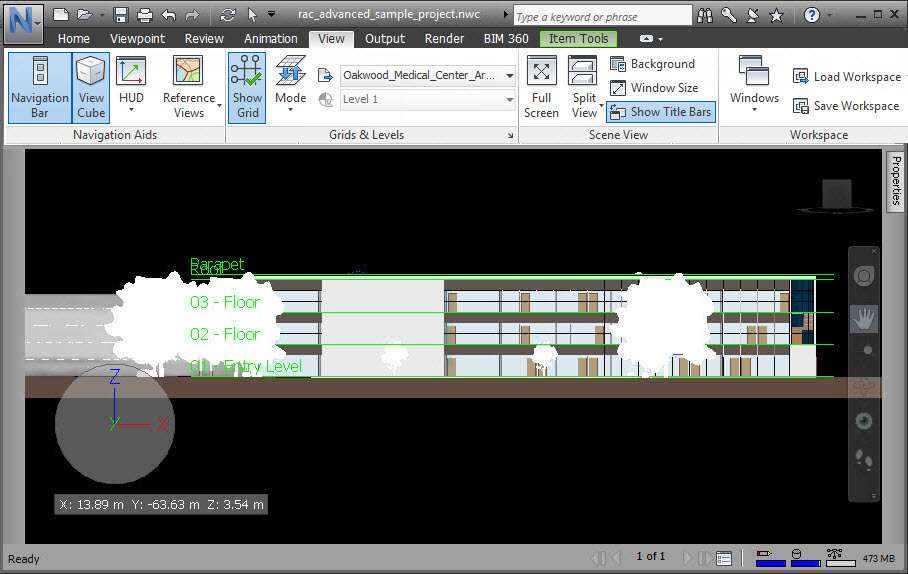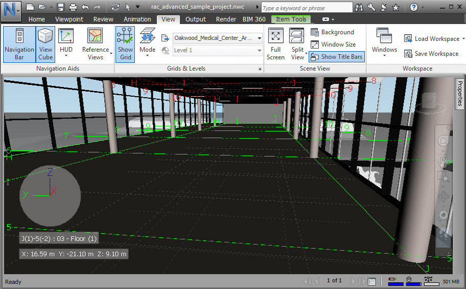Os sistemas de grade podem ser aplicados aos modelos no Revit antes de serem importados ao Autodesk Navisworks.