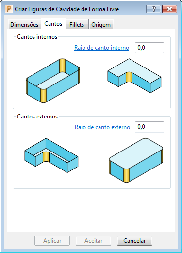 Raio de canto externo — Insira um valor para especificar o raio de fillet para os cantos externos da figura.