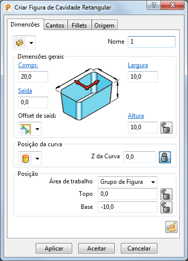 Fillets — Especifica as propriedades de fillet ou chanfro de uma figura.